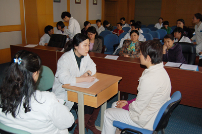 ? 2010年12月2日下午,教务部组织对我院招募的9名标准化病人进行了评估考核,邀请评委为我院教学副院长刘原教授、张巧俊、何爱丽、肖延风、王玉环、曹罡、段钊6名指导教师。整个团队及学生50余人参加了考核过程。教务部马肖容主任主持了本次考核。