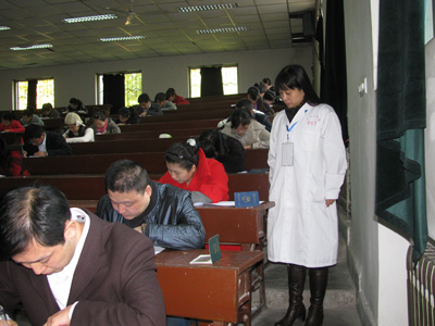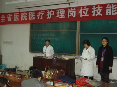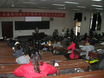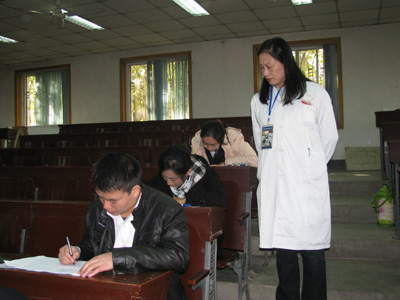 11月4日10时,卫生系统技能大比武基本理论考试在交大医学院病南、理化教室进行,我院有幸承担了此次考务工作,该项工作得到了院领导的大力支持。来自卫生系统10个地市及高校代表队、省直医院代表队、部队系统代表队等130名参赛队员参加了理论考试。陕西省卫生厅医政处副处长欧阳志焕,西安交通大医学中心副主任马兆明、办公室主任马继承,我院副院长高亚、医务部副主任李西英等亲临现场督导考务工作。