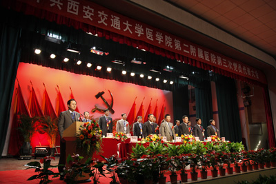 本次党代会是在校党委的领导下,按照《中国共产党章程》和《中国共产党基层组织选举工作暂行条例》的有关规定进行筹备,并于11月19日如期召开。来自我院医疗、教学、科研、党政管理和后勤服务等各个岗位的177名党员代表参加了大会。西安交通大学党委副书记李伟、党委副书记王小力,校长助理、医学院院长、医学中心副主任颜虹,西安交通大学副秘书长、宣传部部长、政策研究室主任贾箭鸣,校组织部部长张定红、常务副部长陈红、副部长杨小渭,校纪委副书记范文良,校统战部部长谢雪,医学中心副主任马兆明,医学院党委书记贺浪冲,第一附属医院党委书记吴永昌和附属口腔医院党委书记李晓红等领导和嘉宾出席大会。大会分别由贺西京院长、程延安副书记主持。