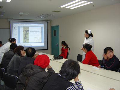活动由普外科护士长段艳霞主持,由营养科硕士宋敏营养师主讲,讲解了如何进行合理饮食、平衡膳食及三餐搭配的技巧,通过图文并茂的幻灯片及丰富多彩的宣传资料对患者、家属及责任护士们进行了精彩的宣教!