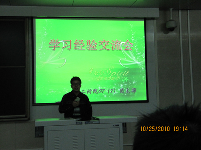 我院07级七年制团支部于10月25日晚7时在教学楼第二教室举办了“学长经验交流会”。06级七年制学长余航、学姐岳鑫和07级七年制的同学们齐聚一堂,为进入临床实习的同学们指点迷津。