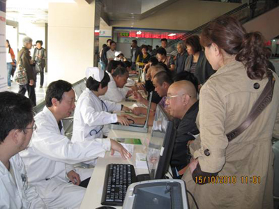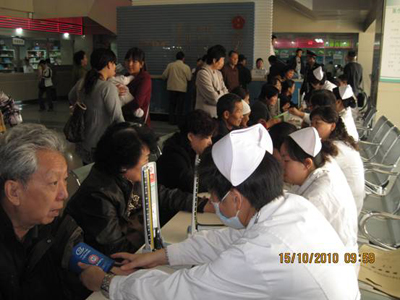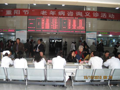 10月15日上午,干部保健管理办公室、老年病学系、门诊部、宣传部组织在门诊一楼大厅举办“重阳节”老年病咨询义诊活动。我院副院长李宗芳教授及干部病区李玺、杨正安教授,杨渭临、张岁龙、何娅副教授等十几位医护人员参加义诊活动,为前来我院就诊的老年患者提供疾病诊治、健康咨询服务。