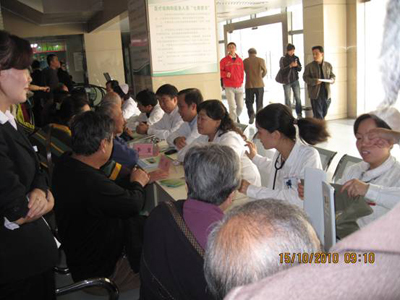 从上午8点30分开始到12点,共接待咨询、检查诊治的老年患者有160余人,发放《常见老年病的防治》宣传手册500多份。一字排开的医务工作者面前人流如织,人头涌动,专家们耐心详细介绍常见老年疾病、心脑血管疾病、老年性痴呆、帕金森病、糖尿病、老年肺炎、老年性便秘、前列腺增生等疾病的临床表现特点、用药原则及防治知识,受到广大老年患者的欢迎和好评。许多老年患者拿着免费赠送的《常见老年病的防治》手册交口称赞说:“二院为老年患者办了件大好事,非常感谢你们”。 在第二十一个老年节来临之际,我院广大医务工作者对老年患者的热情关怀和爱护,使整个医院形成了尊老、敬老、助老的良好氛围,使老人们感受到党和政府及社会的关怀,充分享受社会大家庭的幸福。