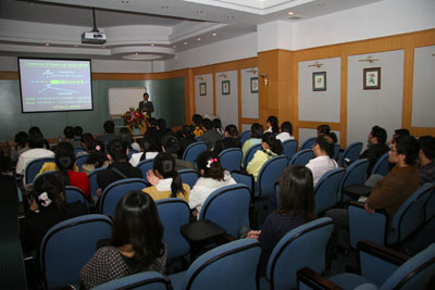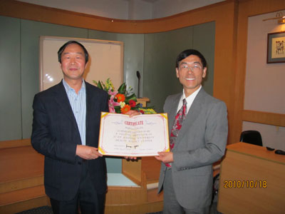 应我院皮肤科副教授耿松梅邀请,美国北卡罗来纳大学皮肤系及免疫微生物系终身教授及皮肤研究所负责人刘稚教授于10月16-20日再次来我院进行学术交流。18日下午,刘稚教授在我院讲学厅举行学术报告“Mast cells, a key player in autoimune and inflammatory disease”, 对肥大细胞与自身免疫性疾病疾病的关系进行了深入而前沿的讲座,尤其是和皮肤疾病间关系的研究令在座的我院皮肤科医师受益匪浅。学术交流会由我院皮肤科主任肖生祥教授主持。会后及次日,刘稚教授分别与科室部分医师及研究生举行座谈会, 听取了目前我们所作相关研究工作汇报, 并提出宝贵的建议,将我们间的学术交流及科研合作又向前推进一大步。 交流期间,肖生祥主任代表我校医学中心向刘稚教授颁发了合作教授证书。