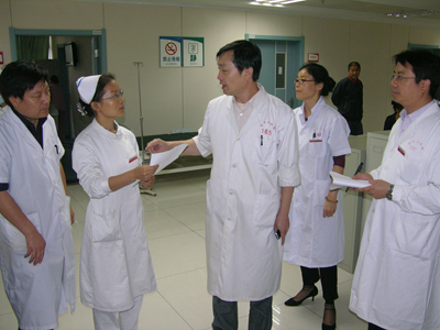 检查组向每一个临床、医技科室送达了《关于做好2010年国庆节节前医疗安全检查的通知》的通知,通知要求各科室一定要高度重视节日期间的医疗工作,切实抓好医疗质量安全