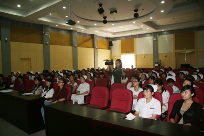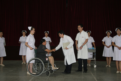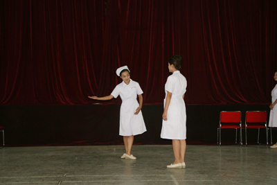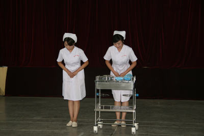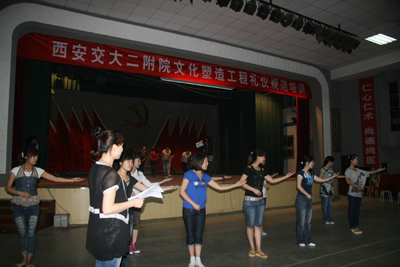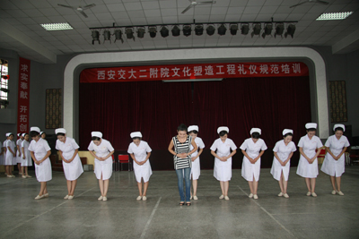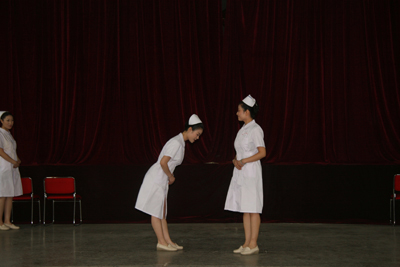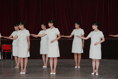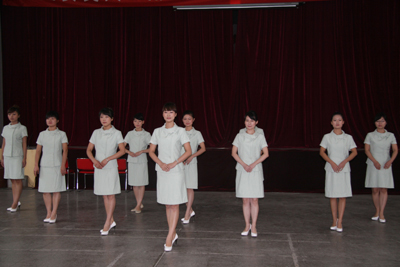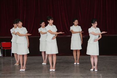 8月27日至30日,经过三天两夜的紧张培训,在指导老师徐野利的悉心指导下,经过“医院服务礼仪文化讲座”、“基本形体、行为职业礼仪训练”、 “选拔、组队、礼仪操训练”、“医院职业礼仪模拟训练”、“医院个人形象、行为设计讲座”、“参赛各队编排训练”、“排练汇报演示内容及流程”、“医院人员发型、妆容、服装(饰)实作练习”、“彩排展示”等环节,我院文化塑造工程礼仪规范骨干培训圆满结束。在培训期间,我院三个代表队的36名队员分别代表内科系统、手术科室系统、综合科室进行紧张排练,在带教老师的指导和各队队长监督训练下,积极克服困难,认真努力训练,在较短的时间内取得了较好的培训成果,也很好地展示了我院职工较高的文化素质和掌握培训内容的能力。院党委副书记程延安在培训期间,多次到培训现场进行察看,观看汇报彩排。护理部主任朱云霞和副主任刘红梅协助宣传部一直进行参预,在培训过程中起到重要作用;工会也在培训场地和音响、灯光等方面给予相应支持。
