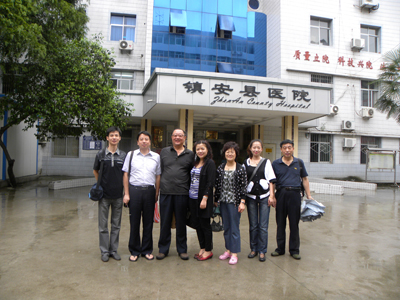 2010年8月21-22日,陕西省超声质量控制中心和影像二党支部组成10余人的医疗组,在质控中心周琦副主任和党支部李小鹏书记的带领下,冒雨前往商洛市镇安县医院检查指导超声质控工作。 镇安县医院是一所集医疗、急救、预防、保健、康复、教学、科研为一体的国家“二级甲等”综合医院、国际爱婴医院, 医院占地面积16514平方米, 开设床位200余张,年门诊10余万人次,年收治住院病人4600余人次,是我院在商洛地区的一所协作医院,常年与我院保持着良好的业务合作关系。医疗组到达当地后,受到县医院领导和功能科室的热情欢迎,陈副院长向医疗组介绍了医院的基本情况后,医疗组随即在超声科开展了疑难病例诊疗及质量控制管理的讨论,受到一致好评。县医院主要领导和超声科全体医生认为医疗组开展的工作给他们带来了扎实有效地帮助,并对医疗组两天的辛勤付出表示衷心的感谢!