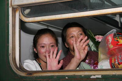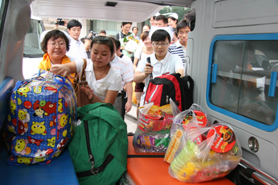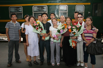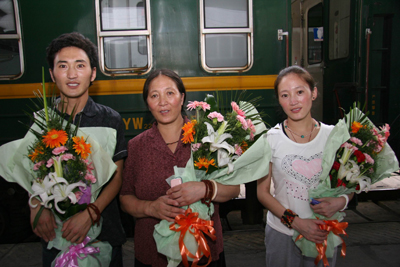 “西安交大二院给了我第二次生命,我永远记着交大二院的医护人员对我的照顾和关怀”这是曲珍临走时一直在说的话。“扎西德勒!谢谢!谢谢你们!”,曲珍的妈妈用不太熟悉的汉语表达着自己的感激之情。“非常感谢!我们一家人遇到你们非常幸运,我们一家人到了交大二院,像在家一样温馨,我们3人的病全治好了,我们非常高兴,谢谢!”菜东代表全家人一再的表示感谢。下午7点50分,曲珍一家3口带着无限的眷恋离开了西安,回到家乡玉树。(通讯员 何跃灵文 宣传部图)