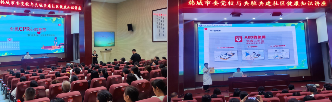 为深入贯彻“健康中国”的战略目标,大力推广健康科普活动向基层延伸,9月20日,在省卫健委的主导下,陕西省健康教育中心的技术支持下,西安交通大学第二附属医院急诊科科普团队应韩城市健康办之邀,赴约韩城市委党校,为200余名市民举办了一场以“安全与应急救护”为主题的健康科普讲座与实战演练。