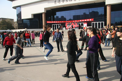 3月7日下午,由交大工会举办的“庆‘三八’女职工趣味运动会”在交通大学思源南广场举行。当天下午,广场上节日气氛浓烈,交大各学院共计27支代表队近500名女工参加。此次趣味运动会分踢毽子接力和两分钟计时跳大绳两个项目。经过赛前认真训练及比赛时的密切配合,我院代表队分别取得了踢毽子接力第一名以及两分钟计时跳大绳第二名的好成绩,展现了我院女职工的精神风貌和团队精神。(工会 寇筱琛/文 刘铨/图)