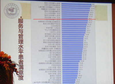 2月28日,全国部分三级甲等医院住院患者体验与满意度调查结果分析总结会在上海市召开,卫生部医管司、中国医院协会领导和来自全国参加满意度调查的41家大型三级甲等医院及部属部管医院院长/主管院长等领导参加了会议。会议主要对2010年组织的住院患者体验与满意度调查结果进行总结,并对各调查医院出具了个性化监测报告。我院的总满意度在全国参与调查的41家医院中排名第九位。