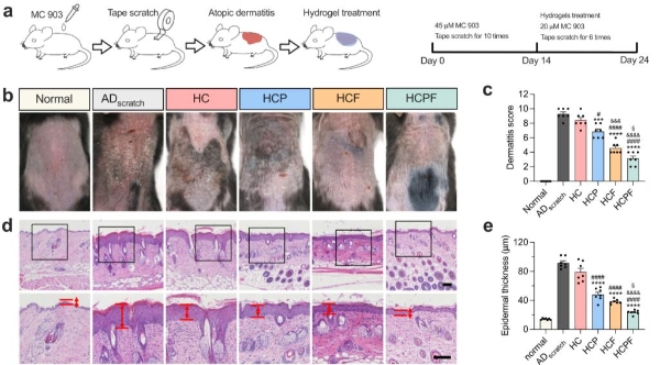 力-化协同治疗特应性皮炎的水凝胶敷料示意图