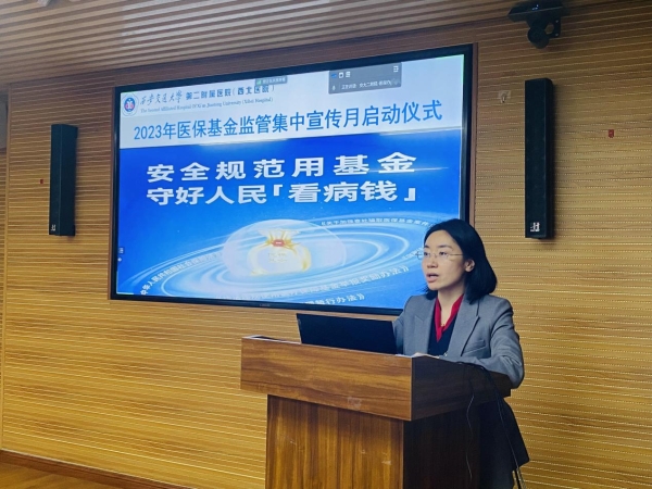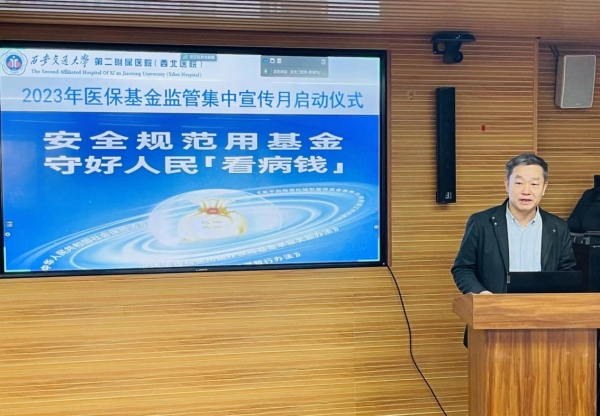 为进一步加强医保基金监管,坚决打击欺诈骗保行为,营造共同关注并自觉维护医保基金安全的良好氛围,4月28日上午,我院通过线上线下相结合的方式,在全院范围内开展以“安全规范用基金,守好人民‘看病钱’”为主题的医保基金监管集中宣传月活动。我院高亚副院长、李文博总会计师出席启动仪式并做了重要讲话。医务部、门诊部、药学部、患者服务部、运营部、财务部、国装办、医信办等相关职能部门负责人,康复科、泌尿外科、影像科、检验科等临床医技科室代表参加了线下启动仪式。