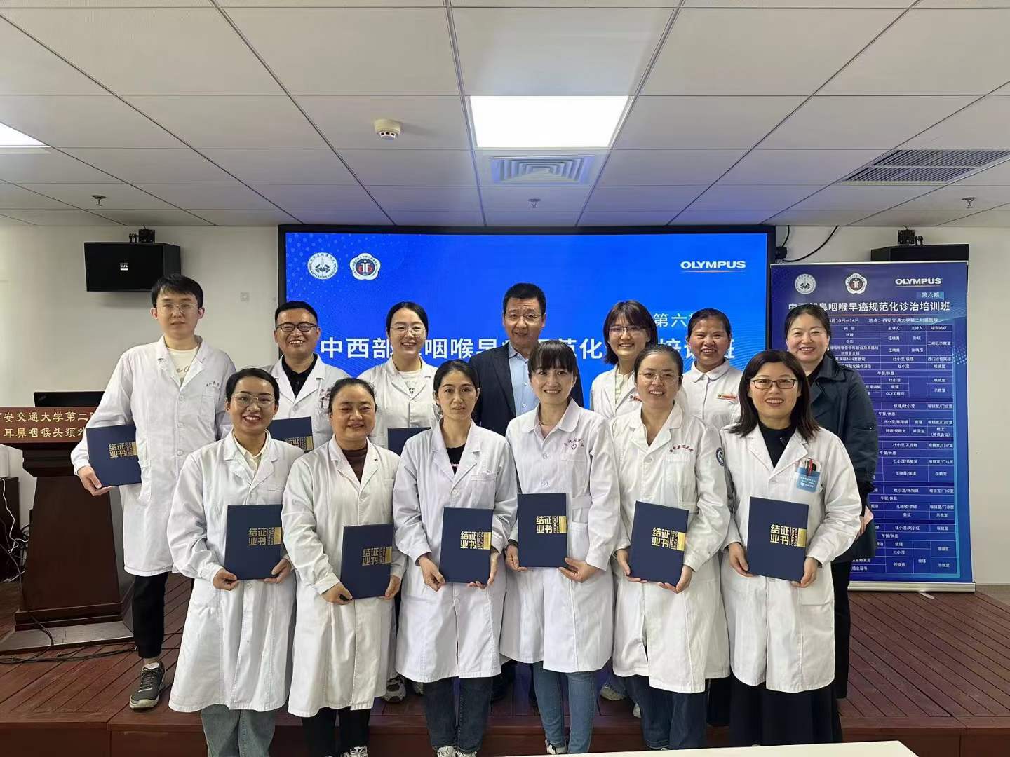 2023年4月10日至14日,鼻咽喉早癌规范化诊断第六期培训班在西安交通大学第二附属医院耳鼻咽喉头颈外科病院举行,来自陕西、甘肃、河南的9家医院的9名医生技师参加了培训,培训结束时,所有学员考核全部合格,颁发合格证书。