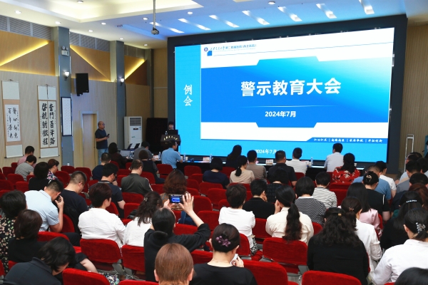 7月8日,我院召开警示教育大会,组织观看《铁纪正医风》警示教育片。此次大会旨在通过典型案例剖析,引导广大党员干部和职工筑牢拒腐防变的思想防线,为医院高质量发展提供坚实政治保障。全体院领导和例会人员参加,党变玲副书记主持会议。
