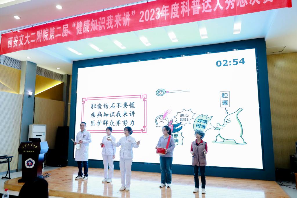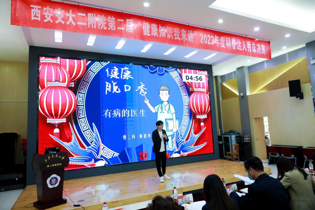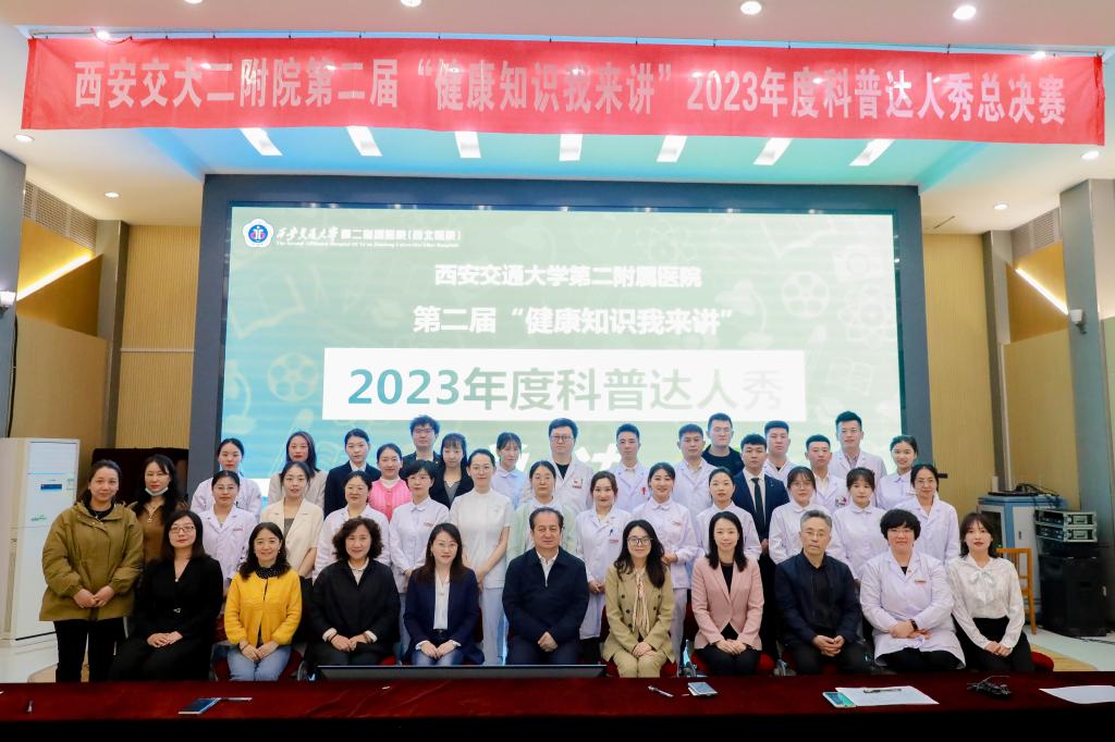 2023年4月14日上午,西安交通大学第二附属医院在南院多功能厅举办2023年度第二届“健康知识我来讲”科普达人秀。经过前期初赛,本次共有19名选手参加比赛,大赛线上线下同时进行,西安交通大学第二附属医院副院长张蓬勃教授出席会议,党委宣传部屈姝利主持本次科普达人秀。