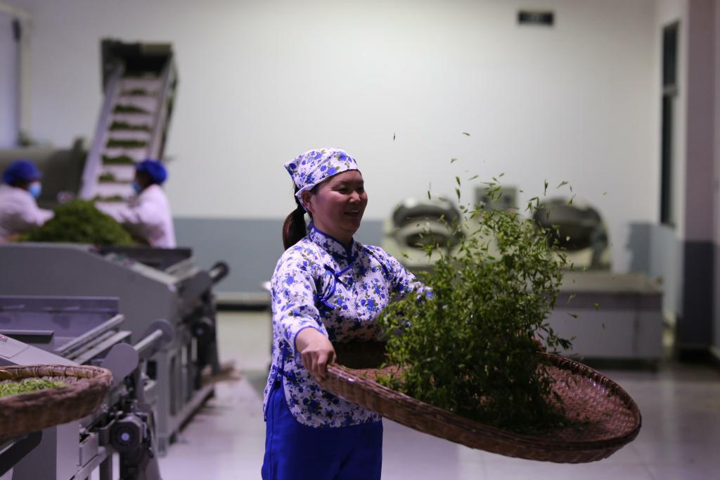 13日下午,帮扶小分队在洛河镇镇长康华引导下参观了当地茶园及现代化茶产业加工车间。茶园里,村民正在手脚麻利地采摘茶叶。“她们在这儿采茶,手脚快的一天能采摘六七斤嘞。”茶园负责人介绍。“感谢二附院每年采购洛河镇及帮扶村茶叶作为职工福利,通过你们每年百万余元的消费帮扶,将产业链延伸到村民,采摘快的村民,一天能挣两百多元手工费。她们不仅照顾了家庭,还就近挣钱补贴了家用。”镇长康华说道。