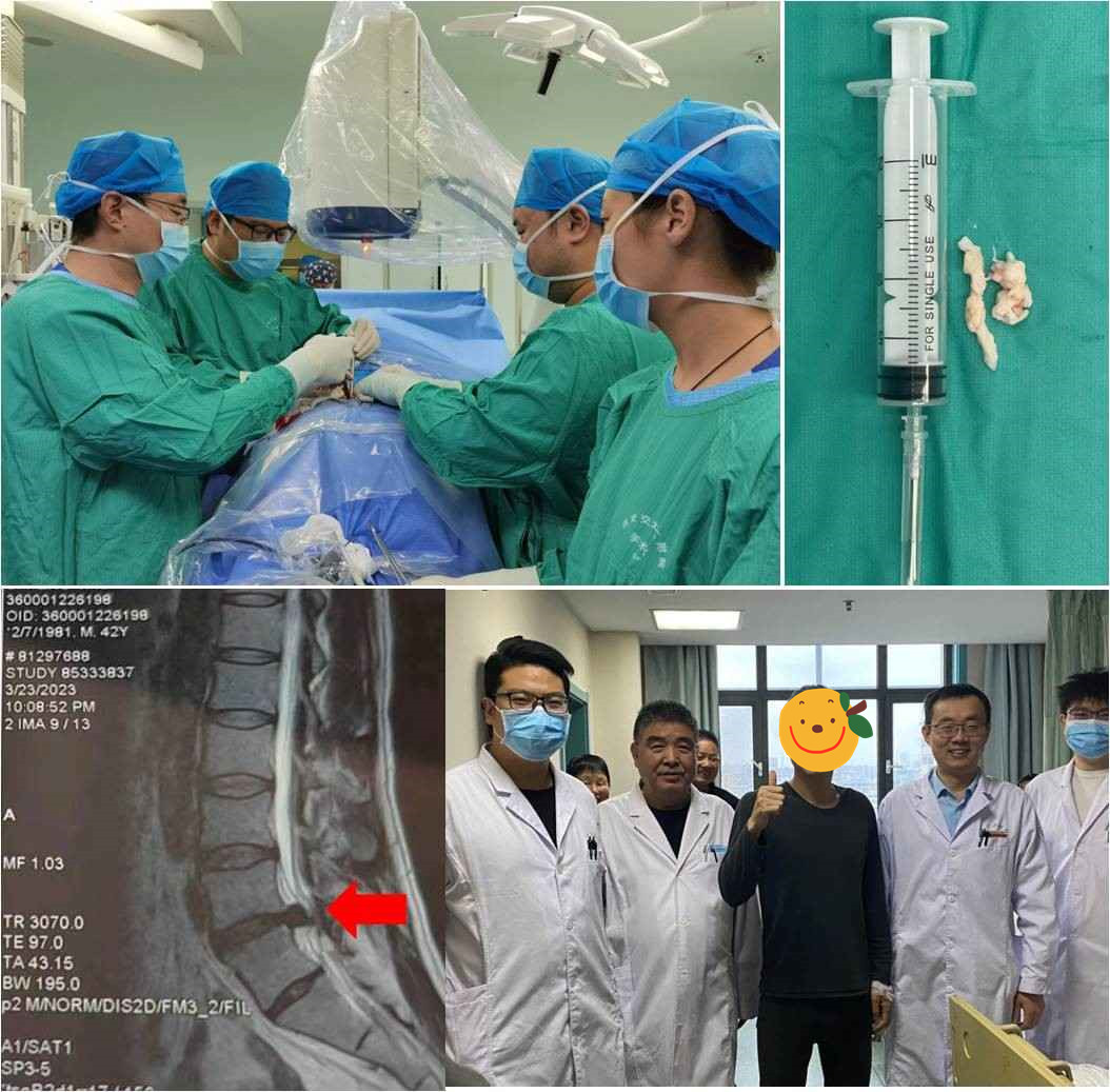 3月31日,王伟卓、董军及其团队成功为李先生实施了单侧双通道脊柱内镜(UBE)下髓核摘除术。术后,李先生表示腰痛、左下肢疼痛明显缓解,次日可以在腰围的辅助下正常行走。