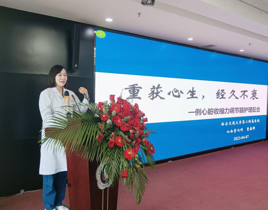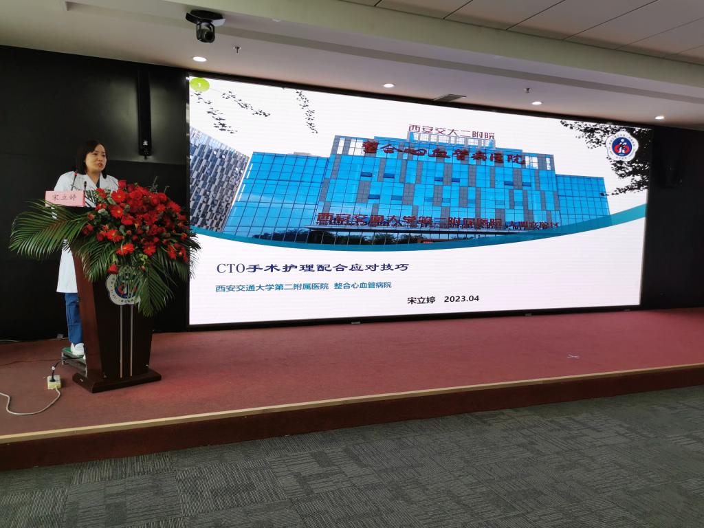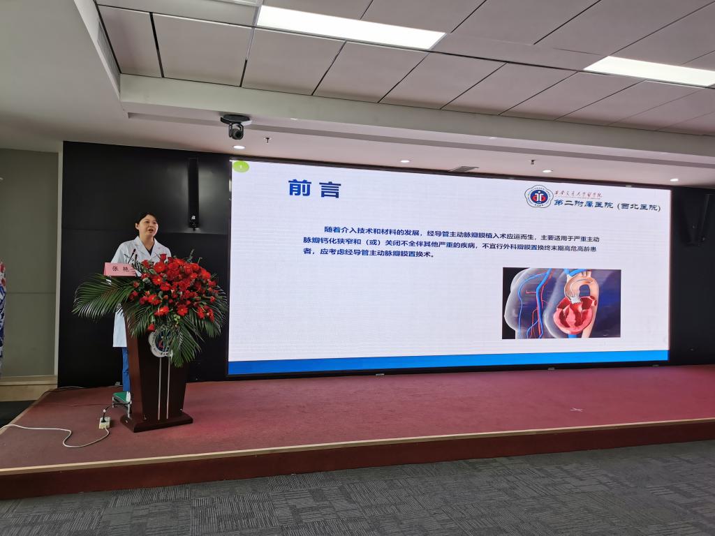 会议由一首歌曲《鼓楼》拉开帷幕,导管手术室护士万源和技师刘奔倾情弹唱,指尖触动美好,琴弦拨动心声,为会议营造出良好、愉快的氛围。会议正式开始,王蓉护士长致辞并围绕心血管介入护理国内外发展历程、心血管介入医、护、技有效配合以及科室心血管介入护理发展现状进行了简要的概述。接下来分别由导管手术室护士王小芳,宋立婷,徐凯,张艳以及副护士长曹春晖等以心血管介入为主题进行了介入手术室环境卫生学检测、CTO手术护理配合应对技巧、房颤一站式手术的术中配合、心脏收缩力调节器的护理配合以及经导管主动脉瓣置换的护理配合的课程讲解与论述。曹春晖副护士长就导管手术室工作特点,结合《心血管介入治疗护理实用技术》的内容对心血管介入治疗及护理进行了剖析和解读,提出心血管介入护理的成果与不足,并对未来工作提出了期望和要求。