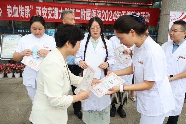 奉献热血,守护生命,为积极响应西安市卫生健康委员会以“医者仁心,热血传承”为主题的卫生健康系统无偿献血月活动,切实弘扬医务工作者“敬佑生命、救死扶伤、甘于奉献、大爱无疆”的崇高精神,在医务部、工会、党委宣传部、团委、输血科、大明宫院区管理办公室多部门联合组织下,启动了2024年度西安交通大学第二附属医院无偿献血月活动,号召全院职工、党员、青年团员响应倡议,积极加入无偿献血队伍。