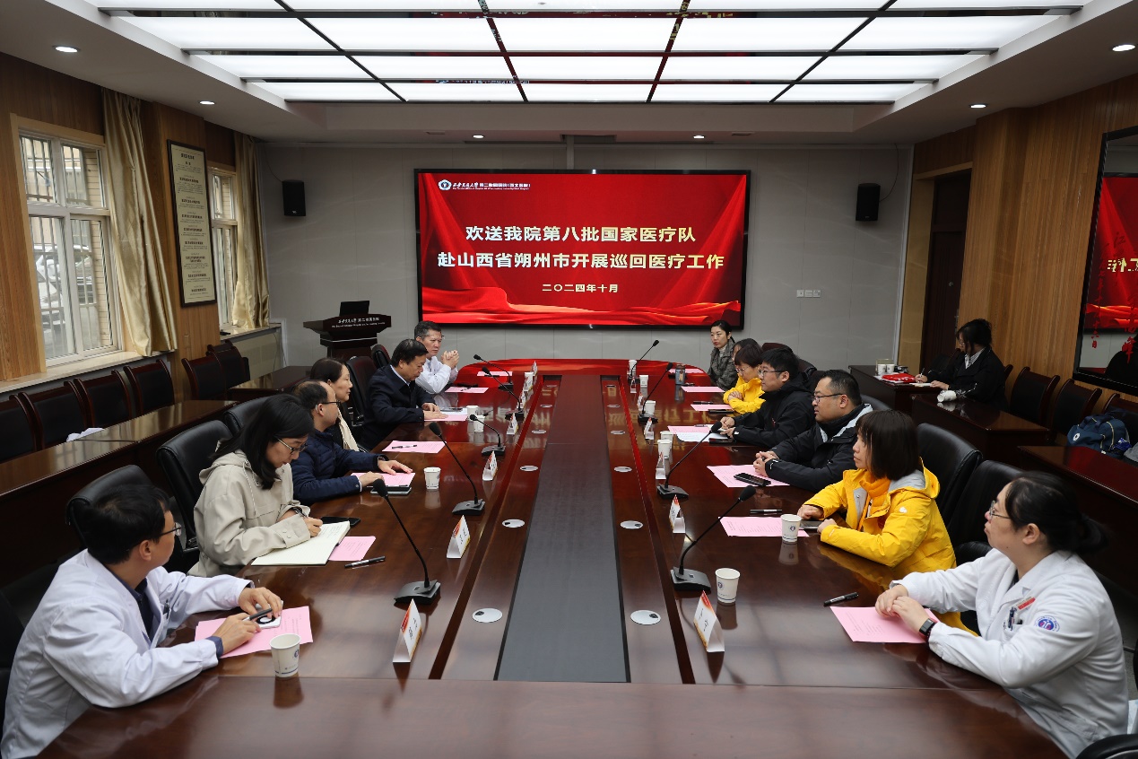我院第八批国家巡回医疗队已于10月21日启程,深入基层开展巡回医疗工作。此行旨在充分利用我院专业优势和技术力量,为山西省朔州市医疗机构提供有力的技术支持与指导,同时,也致力于解决当地群众的急难愁盼的医疗健康问题,以实际行动践行医者仁心,传递健康福祉。