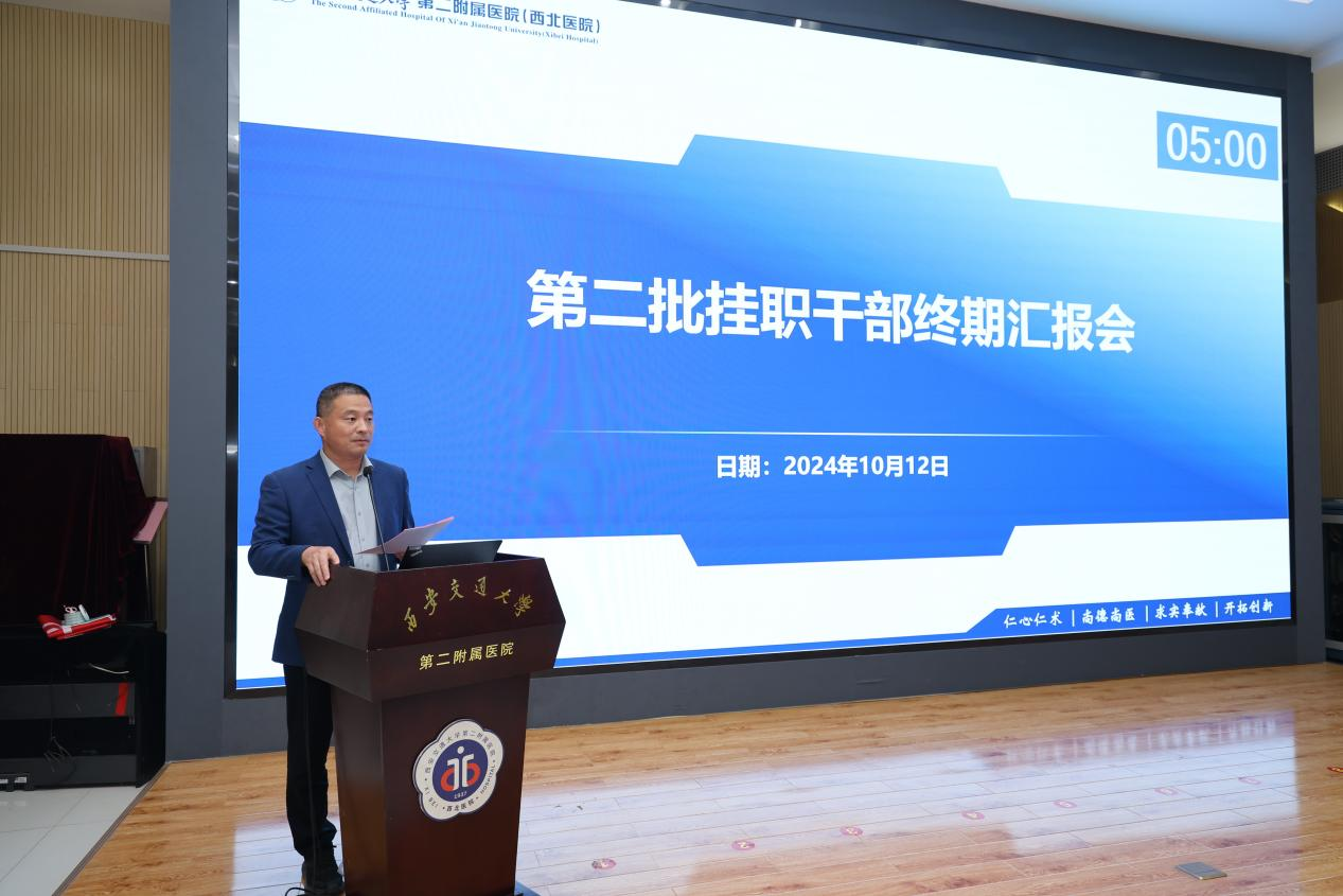 为进一步加强医院管理力量,有效发挥我院青年骨干在医院高质量建设与发展中的生力军作用,自2023年8月1日起,医院共选派53名优秀青年人才和40计划入围人选,以“项目制”方式在管理职能部门挂职及医院层面进行挂职。目前,第二批挂职干部一年挂职任期已近尾声。10月12日下午,在党委办公室组织下,我院在多功能厅召开第二批挂职干部终期考核汇报会,刘明副院长,临床医技科室代表、挂职干部所在职能部门负责人及员工代表、全体挂职干部参加会议,会议由党委办公室主任赵振峰主持。