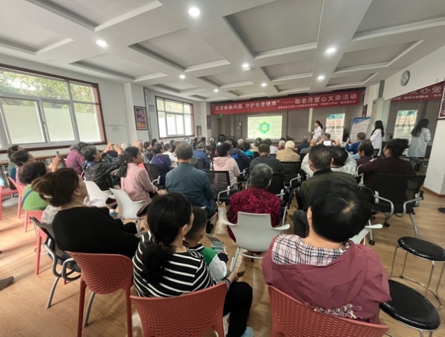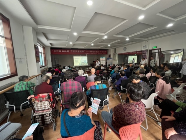 2024年10月15日,在皮肤病院耿松梅主任的带领下,由彭斌医师、杜雪珊医师、张欢医师、延聪医师和孔淑贞副护士长组成义诊团队,在离退休处副处长刘新宏,医学办公室主管任金妮的协调下,开展了“敬老月”系列的第一期活动。