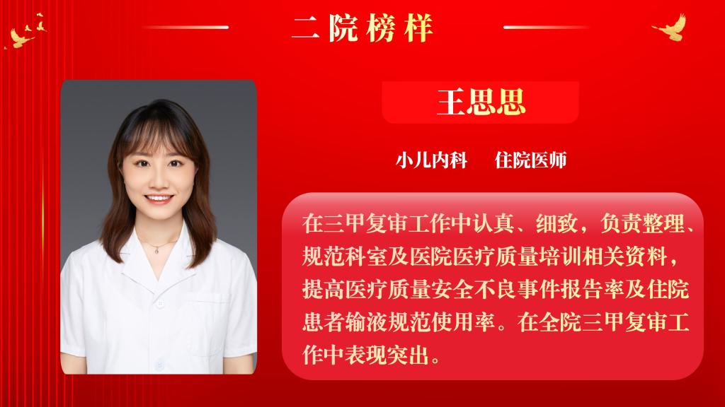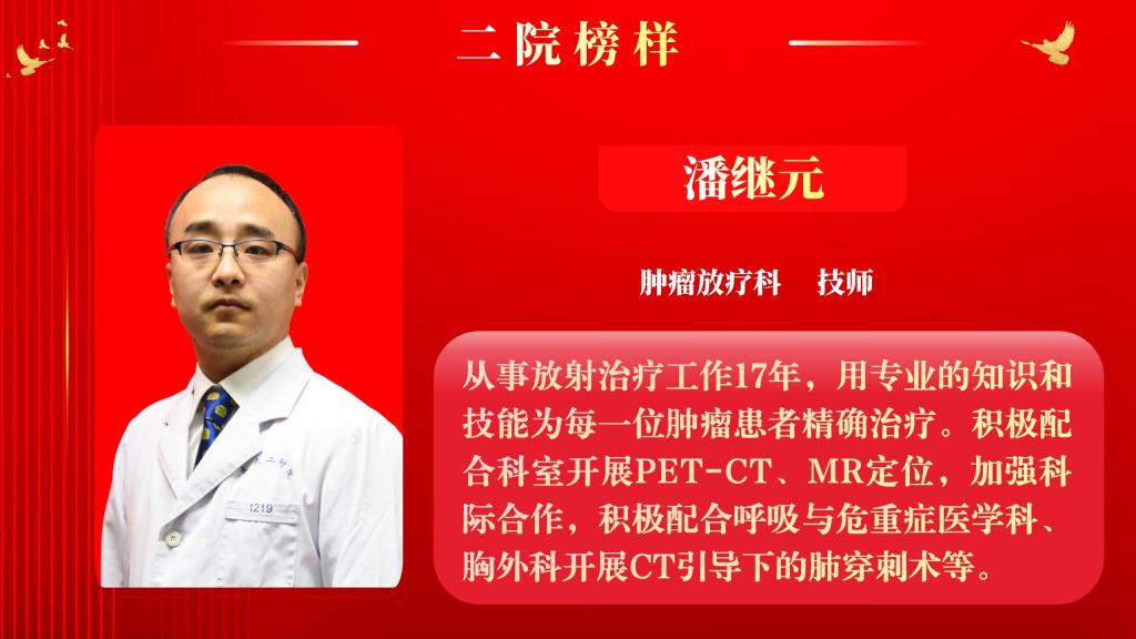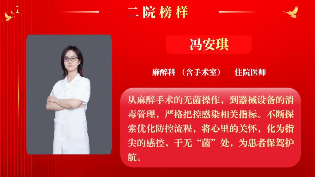 仰望星空有对标,脚踏实地有行动,平凡的是岗位,不凡的是精神。此次“二院榜样”月度人物共评选出10名,他们分别是:此次“二院榜样”月度人物共评选出10名,他们分别是:小儿内科住院医师王思思、麻醉科(含手术室))住院医师冯安琪、老年综合内科主治医师权乾坤、消化内科护师乔昭君、皮肤科副主任医师刘平、中医科主治医师李睿萍、普通外科副主任医师张心武、消毒供应科主管护师赵贾、超声医学科主治医师麻妙艳、肿瘤放疗科技师潘继元。