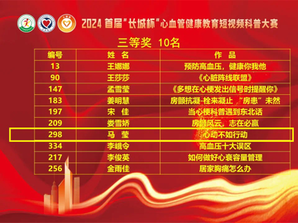 2024 年 11 月 1 日,老年心血管内科制作的科普作品《心动不如行动》在首届“长城杯”心血管健康教育短视频科普大赛中荣获三等奖。