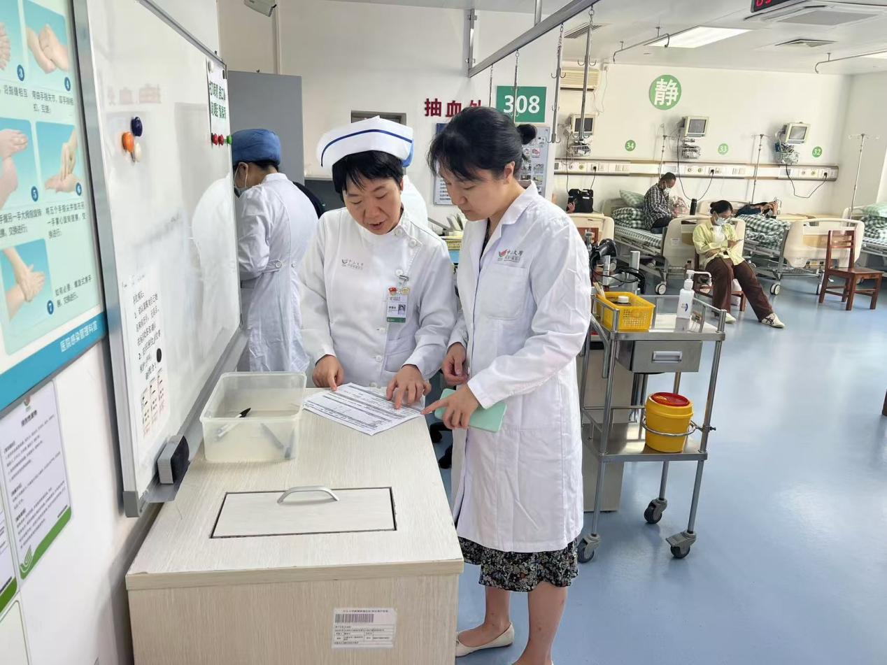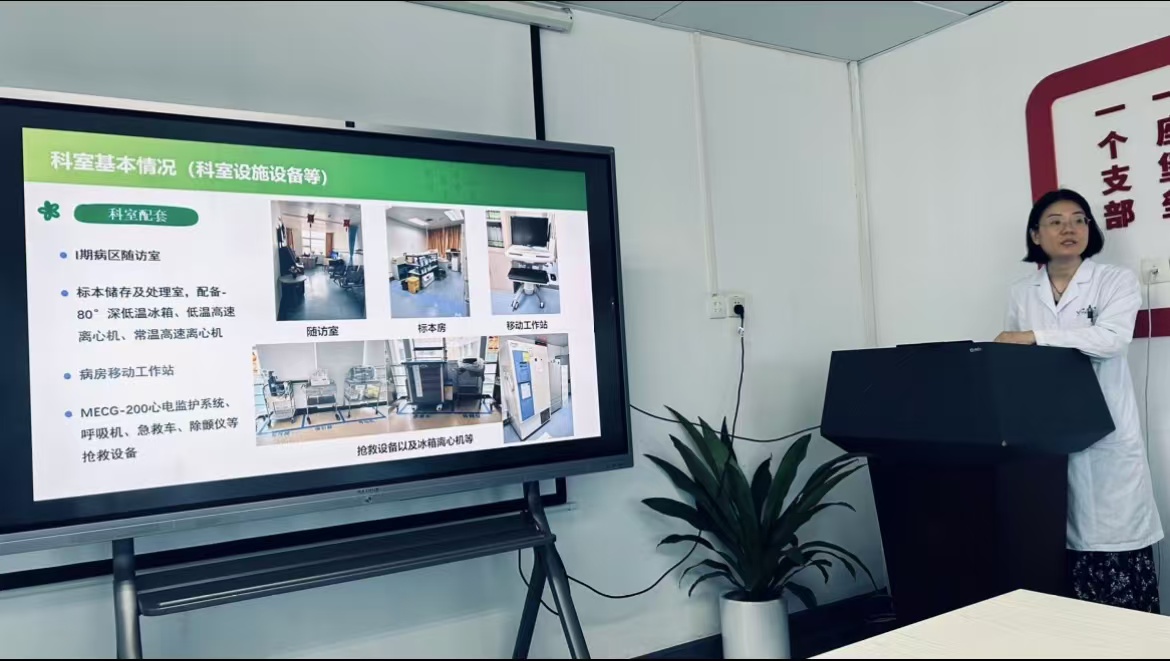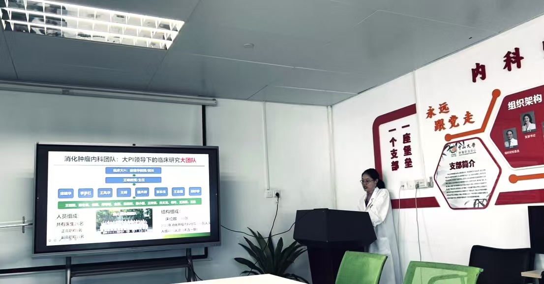 中山大学肿瘤防治中心院长助理及内科主任王峰教授、内科二区区长李宇红教授、骆卉红教授、临床研究部主任兼I期实验室主任李苏研究员、日间治疗中心护士长廖昆仑等携相关科室负责人对我院一行人员到访表示热烈欢迎。22日上午我科人员在中肿相关接待人员的安排下参观了内科消化组教授门诊,随后于内科病院、I期临床病房进行参观。王峰主任详细介绍了中山肿瘤防治中心I期临床研究的布局及发展,尹晓然副主任介绍了我院肿瘤内科的历史与现状,双方就学科及临床高质量建设规划及研究型科室转型发展的核心问题展开了深入交流。随后,日间治疗中心护士长廖昆仑带领我院一行参观了日间化疗病区、消化肿瘤内科病房等,深入了解了中山大学肿瘤防治中心日间化疗诊疗流程及运营模式、I期临床研究病房及综合研究型病房设置、临床研究管理及发展模式,并且参与了消化系统肿瘤病区及肺肿瘤病区的疑难肿瘤患者病例讨论会。肿瘤内科魏小丽副主任医师、I期临床研究中心刘芙蓉主治医师就当前肿瘤内科学科建设发展及开展的临床研究及未来研究方向为我院一行做深入讲解。