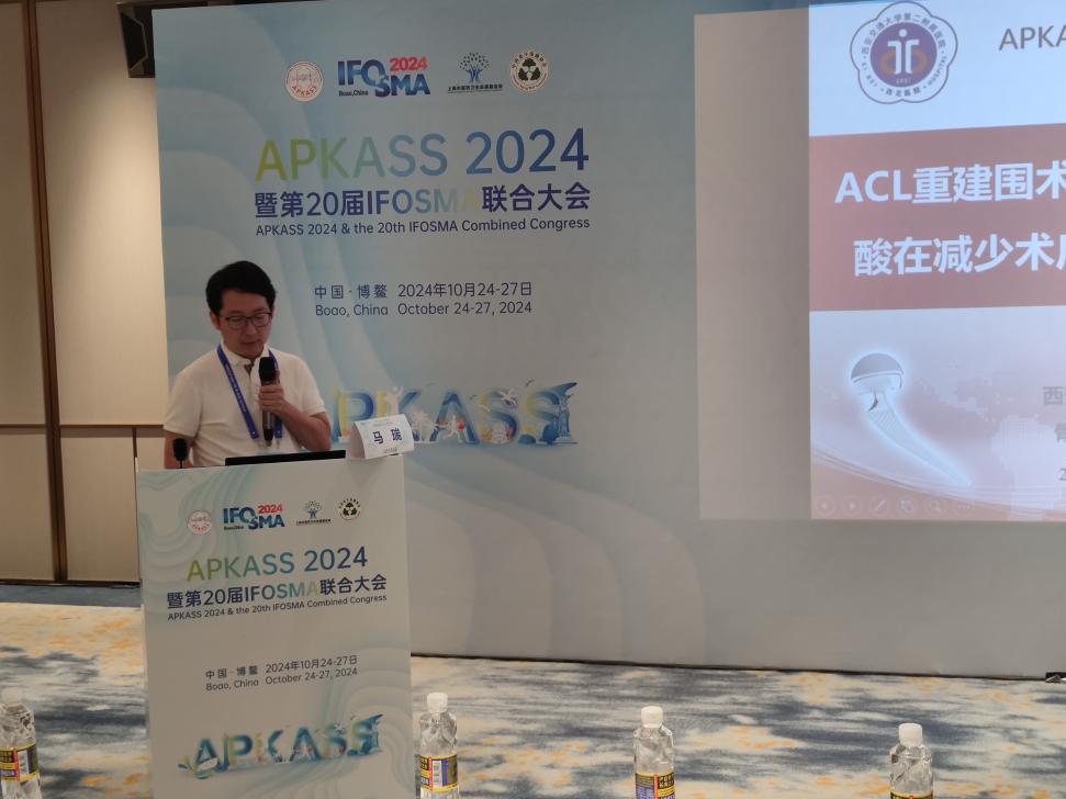 我院骨科中心关节与足踝病区马瑞副研究员受邀参加此次盛会,并围绕“前交叉韧带重建术中静脉和关节腔局部应用氨甲环酸预防术后关节内血肿的效果对比”这一主题进行了精彩发言。他详细介绍了氨甲环酸在前交叉韧带重建术中的应用,以及静脉和关节腔局部应用氨甲环酸预防术后关节内血肿的效果对比。马老师指出,氨甲环酸作为一种抗纤溶药物,在前交叉韧带重建术中应用具有显著效果,不同给药方式对于预防术后关节内血肿的效果仍然不清楚。通过对比研究,他发现关节腔局部应用氨甲环酸与静脉应用在预防术后关节内血肿方面效果相当。
