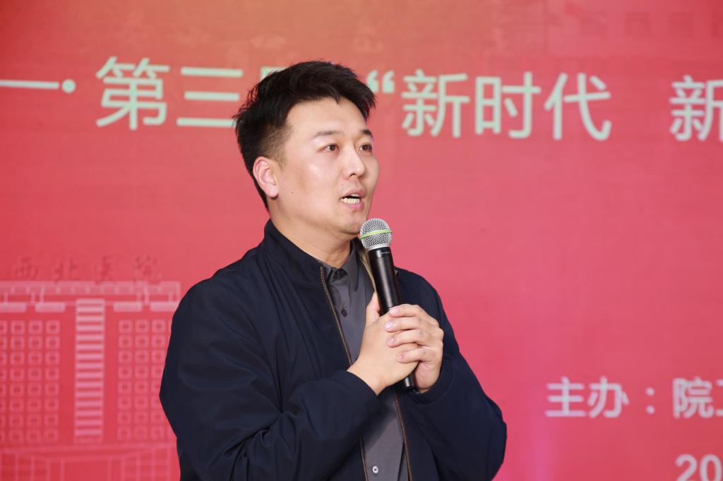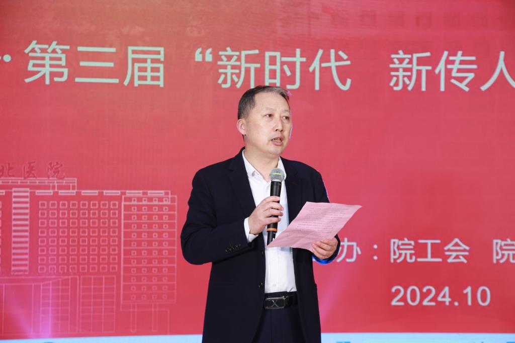 滕文葆副书记致开场词,他表示,今年是新中国成立75周年,也是医院迁陕建院87周年,此次活动的举办具有特殊意义。工会、团委作为群团组织以此活动为契机,为职工提供了一个展示自身才华、相互交流学习的宝贵舞台,同时通过经典诵读大赛,精准有效地发挥出思想引领的作用,激发全院职工的精神凝聚力与向心力,为医院的蓬勃发展增添新的活力。