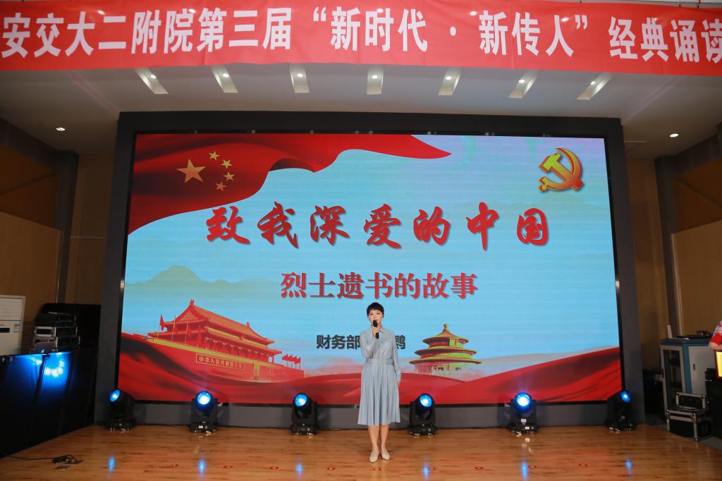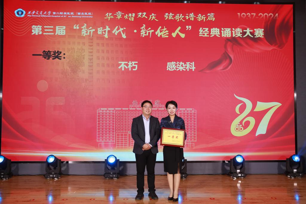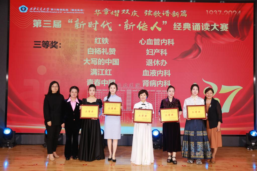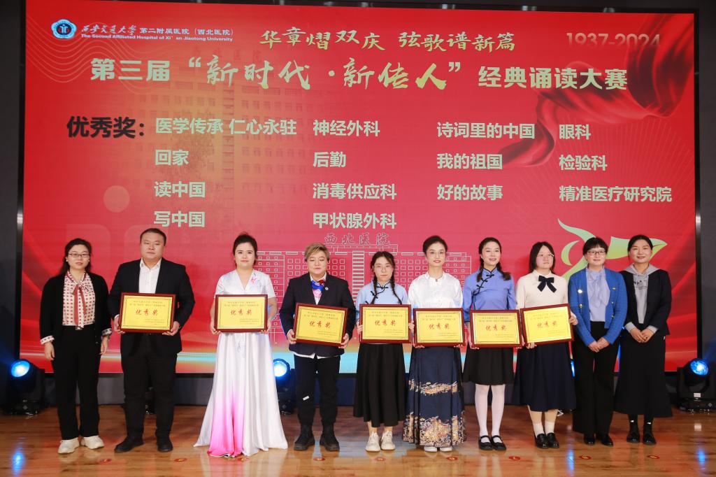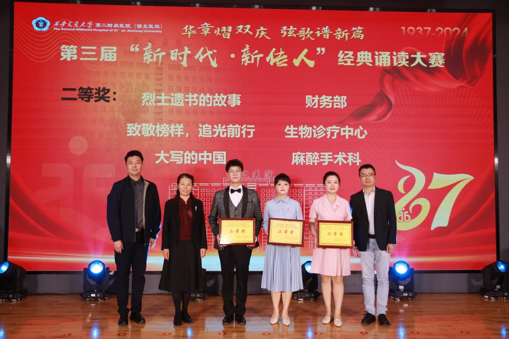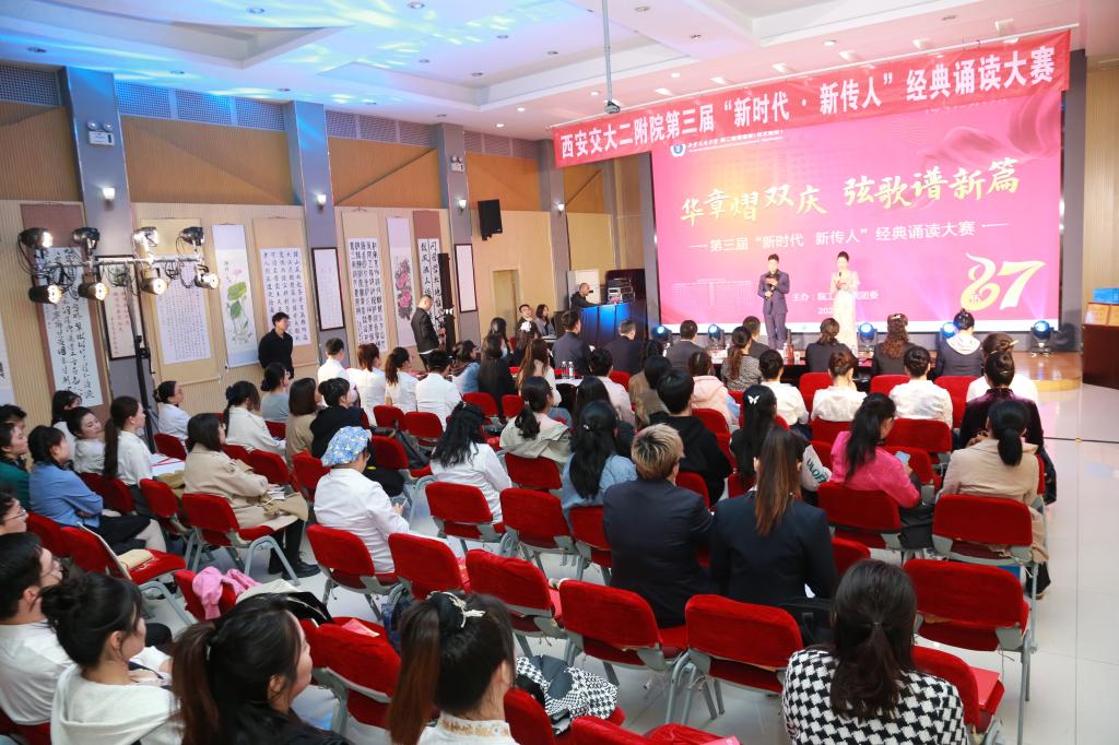本次大赛是我院第三届“新时代 · 新传人”经典诵读活动,大赛不仅为教职工送上了一次文化的盛宴,更是一次精神的洗礼。在医院迁陕建院87周年之际,通过经典诵读的形式,引领全院教职工重温历史、铭记初心,在诵读的过程中传递情感、分享感悟,让这份情感的共鸣凝聚成二院人团结一心、携手向前的强劲动力,共同谱写医院高质量发展新篇章!