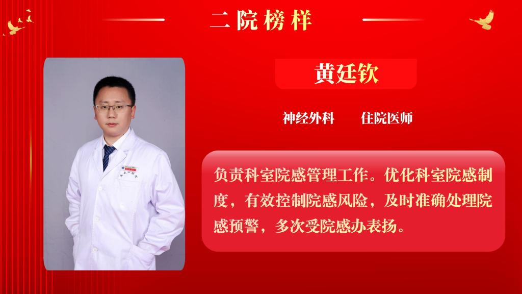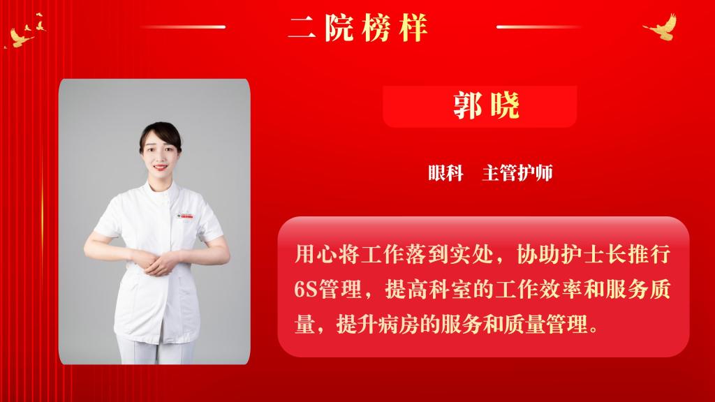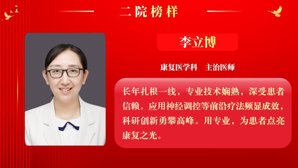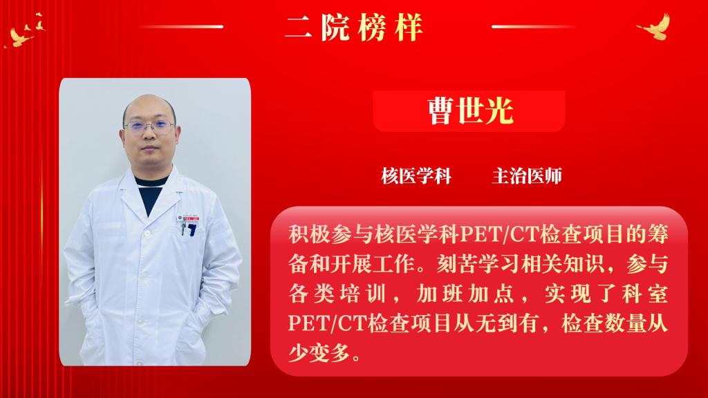 仰望星空有对标,脚踏实地有行动,平凡的是岗位,不凡的是精神。此次“二院榜样”月度人物共评选出10名,他们分别是:医学检验科副主任技师朱建宏、心血管内科护师乔佩英、康复医学科主治医师李立博、后勤保障部中级工李彩霞、肾病内科主治医师杨艳艳、普通外科主治医师张迪、医学影像科住院医师张莉、眼科主管护师郭晓、神经外科住院医师黄廷钦、核医学科主治医师曹世光。