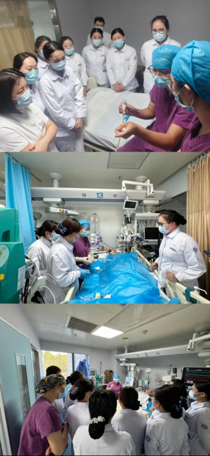 欢迎仪式上,王利护士长对学员们的到来表示热烈的欢迎,学员们在主管护师赵海宁的带领下,深入重症医学科,实地参观了解科室环境布局、设备配置以及日常工作流程。