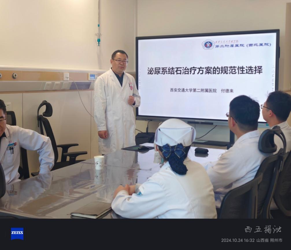 技术引领医疗服务,创新带动学科发展。在医疗工作之余,我院巡回医疗队秉持“授之以渔”的工作理念,通过临床查房及授课等多维度工作,着力加强医疗服务内涵能力建设。在骨科,张晨教授以《All-Inside前交叉韧带全内重建技术及术式改良新策略》为主题将韧带重建的最新技术进展开展教学培训。在泌尿外科,付德来教授通过《泌尿系结石治疗方案的规范性选择》的精彩授课,将泌尿系统常见病的规范化诊疗思路进行系统讲授。巩雨医生根据神经内科需求,以《浅谈临床研究》为授课主题,并结合科室医生提出的具体科研问题,通过展示文献检索、初步科研设计、科研报告范式帮助其科研想法实时落地,并在会后展开热烈讨论。
