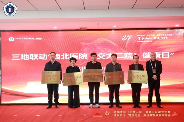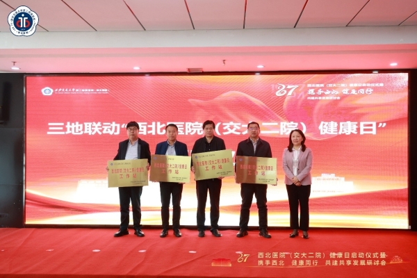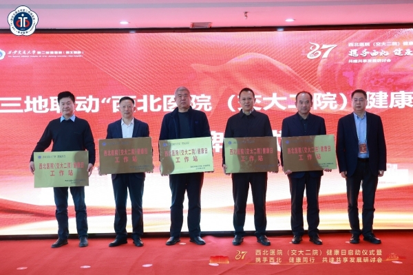 之后,西安、商洛、平利3个会场一体联动,西安交大二附院与铜川市卫健委、安康市卫健委、商州区政府、平利县政府,延安市人民医院、铜川市人民医院、咸阳市中心医院、汉中3201医院、商洛市中心医院、榆林市第一医院、榆林市星元医院、安康市中医医院、渭南市人民医院、临潼区人民医院、蓝田县人民医院、礼泉县人民医院、乾县人民医院、华阴市人民医院、富平县中医医院、南郑区人民医院、洋县人民医院、延川县人民医院、定边县人民医院、府谷县人民医院、商州区医院、平利县中医医院等一起开启“西北医院(交大二院)健康日”。西安交大二附院还为相关市、县、区医院授牌“西北医院(交大二院)健康日”工作站。