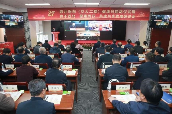 2024年10月25日,西安交大二附院“西北医院(交大二院)健康日”启动仪式暨“携手西北 健康同行 共建共享”发展研讨会在西安、商洛、平利三地线上线下同步顺利举行。陕西省卫健委二级巡视员师中荣,西安交通大学医学部副主任孟晓军、张峰,以及铜川市卫健委、安康市卫健委、商州区政府、平利县政府负责同志,铜川市人民医院、商洛市中心医院、平利县中医医院等23家有关市、县、区医院院长、书记及代表应邀出席。西安交大二附院党委书记刘昌以及在院的领导班子,有关临床医技科室、党政后勤管理部门负责人参加活动。活动由西安交大二附院副院长戴一主持。