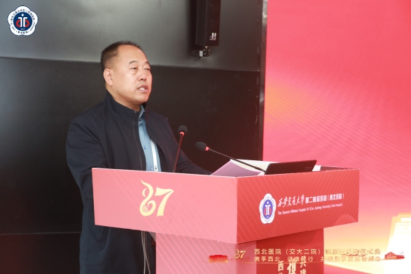 陕西省卫健委二级巡视员师中荣,西安交通大学医学部副主任孟晓军分别致辞。师中荣指出,此次“西北医院(交大二院)健康日”活动,不仅吸引了省内市、县、区医院的积极参与,更汇聚了省内医疗领域的中坚力量。西安交大二附院作为陕西医疗卫生事业的排头兵,始终秉持开拓创新的精神,勇于担当重任,积极引领医疗卫生事业的发展潮流。希望通过此次活动,搭建起一个信息共享、经验交流和技术协作的平台。孟晓军表示,“西北医院(交大二院)健康日”采取了“1+N”的模式,创新模式、创新举措、创新思路,为推动优质医疗下沉和均衡布局做出积极贡献。