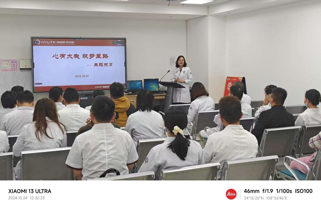 10月24日中午,影像医学科党支部组织全体党员开展“心有大我,筑梦医路”主题党日活动,大明宫院区、在岗党员、下乡党员线上参会,会议由组织委员郝志康主持。