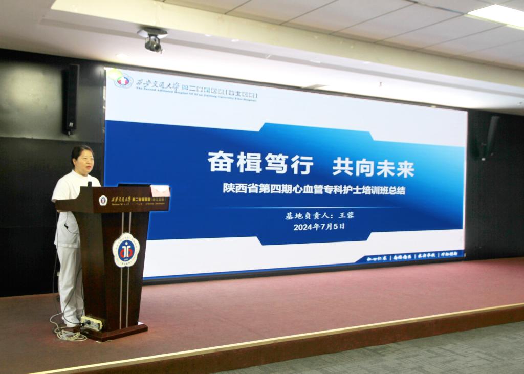 日月更迭,光影流转。2024年7月5日上午,由西安交通大学第二附属医院承办的陕西省第四期心血管专科护士培训班结业典礼在大明宫院区14楼会议室举行。护理部主任杨惠云,心血管病院院长郑强荪,护理部副主任孔德玲,心血管内科主任邓捷,心血管内科护士长暨基地负责人王蓉,心血管内科副护士长王妮、曹春晖、雷蕾、宁珊珊、刘欣源,专科培训班带教老师及心血管专科学员共同参加。结业典礼由培训班班主任宁珊珊副护士长主持。