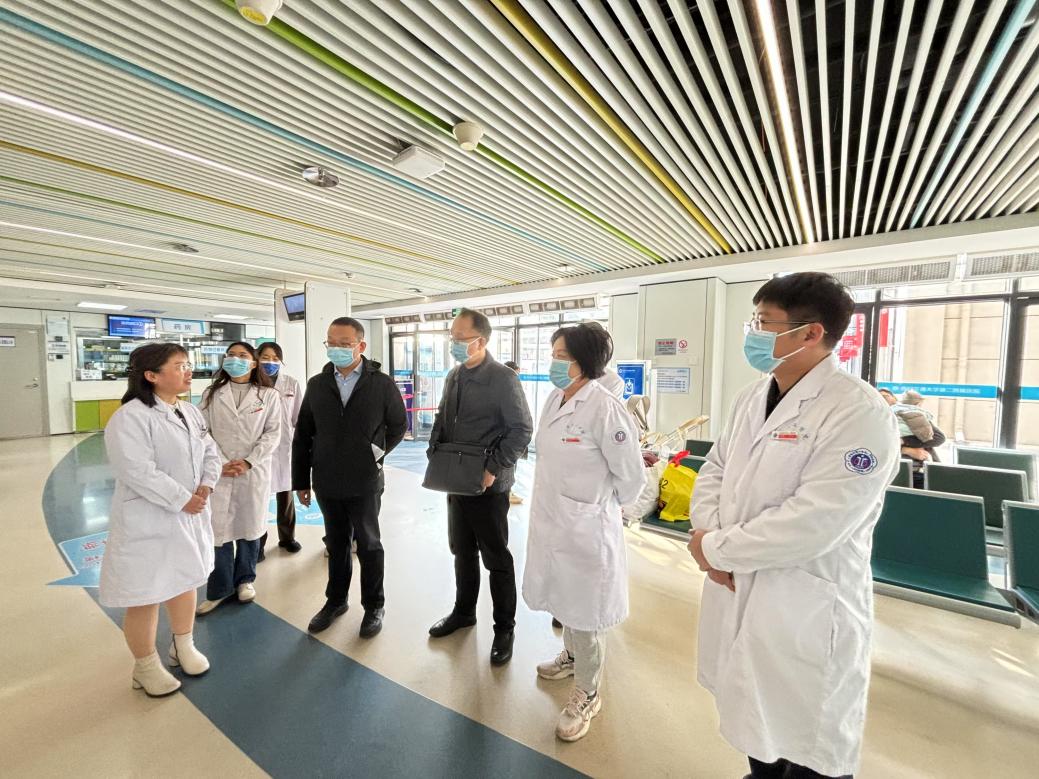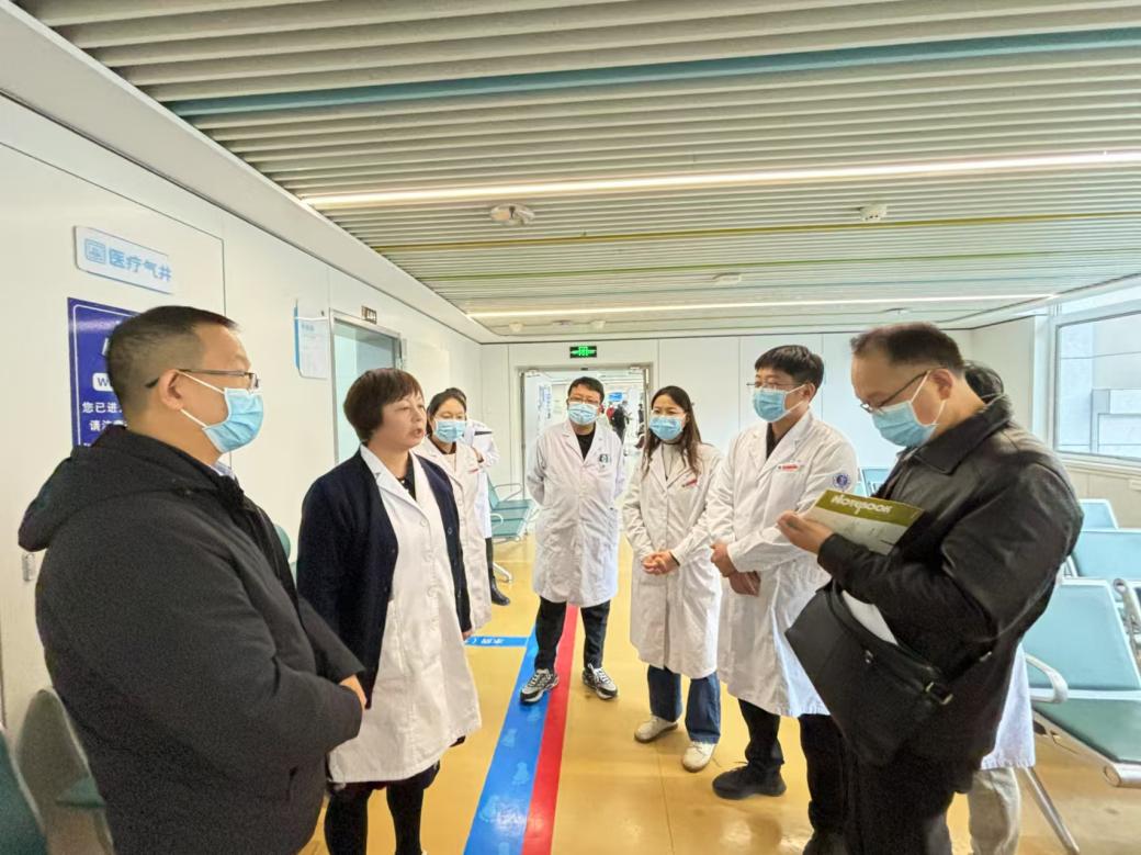 在儿科,专家组详细查看了儿科的急诊诊室和输液室,在岗工作人员向专家介绍了儿科急诊的预检分诊和就诊流程、近期每日就诊人数、日常开展冬春季呼吸道传染病的防治和健康知识宣传教育以及规范对诊室和输液室加强清洁消毒。儿科杨琳主任向两位专家介绍了我院儿科的整体情况以及进入冬春季呼吸传染病高发期做的一系列防控措施。