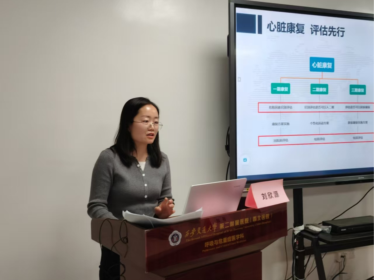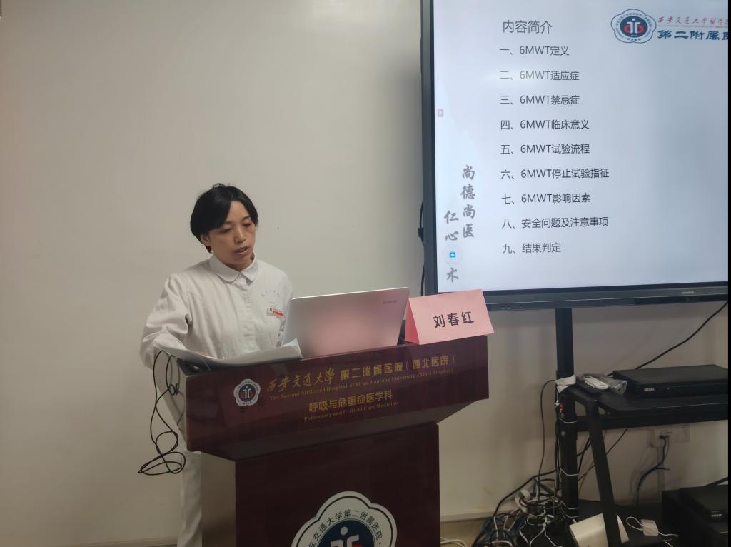 心内科副护士长刘欣源老师向大家分享了《心脏康复评估技术》,刘老师从心脏康复的发展历史、心脏康复获益、临床应用、心脏康复流程、心脏康复具体评估流程方案等进行详细讲解。呼吸与危重症医学科刘春红老师向大家分享了《肺康复评估-六分钟步行试验》,刘老师从六分钟步行试验的定义、适应症、禁忌症、临床意义、试验流程、影响因素、安全问题等等进行详细讲解,结束后带领小组成员通过现场实操,让大家进一步了解六分钟步行试验的具体操作方法及安全应对。