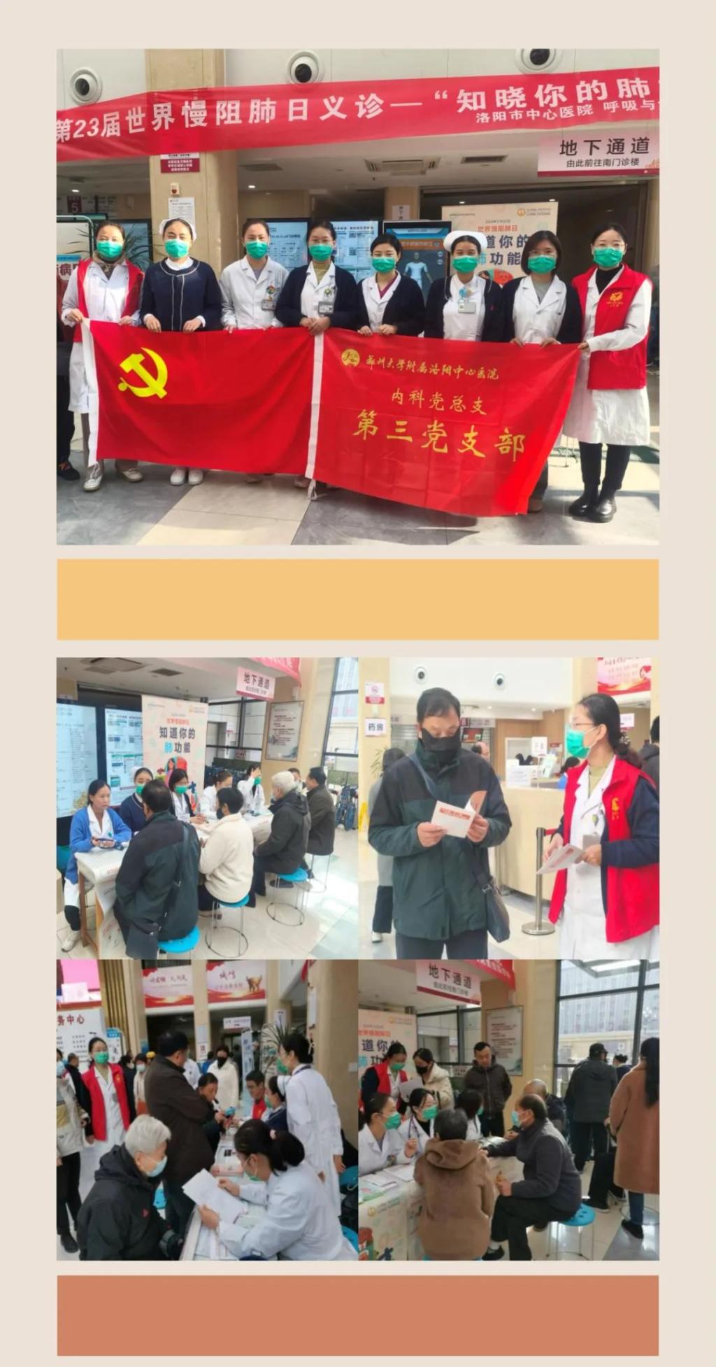 先后在洛阳日报、洛阳晚报、直播洛阳、院内宣传平台等发表文章10余篇。在洛阳日报、洛阳晚报刊登报道《西交大二附院洛阳医院显靓姿》;11月20日,洛阳市中心医院呼吸与危重症医学科举行“世界慢阻肺日”义诊活动;借助“糖尿病日”、“心梗防治日”开展糖尿病义诊、糖尿病防治讲座、心梗防治宣讲活动多场,彰显社会责任担当。