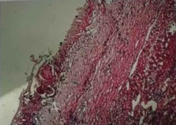 11月19日术中联合控制中心静脉压,Pringle法间断阻断肝门,精准定位外囊与肝组织的界限,避免损伤门脉分支及胆管等重要结构,保持囊壁完整性,术中出血约100ml,成功行“肝左叶S3切除,右叶包虫外囊摘除术”。术后患者恢复良好,病理为:外囊完整囊性肿物,内有粉皮样物,符合包虫病。