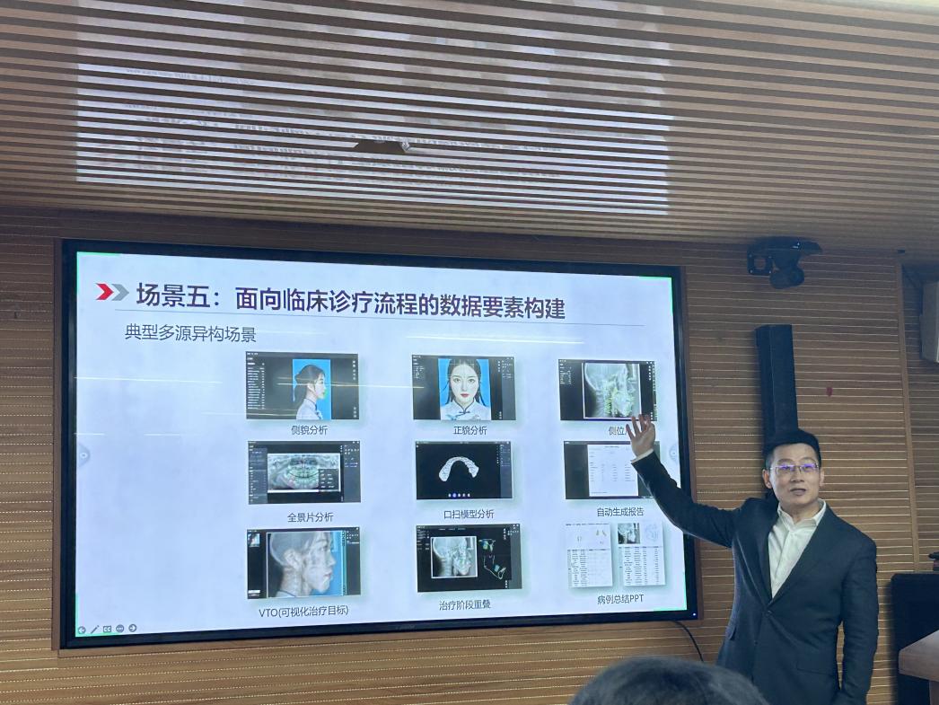 讲座邀请西安交通大学李辰教授进行《以临床场景为导向的人工智能应用研究》讲座,李辰教授从人工智能研究的“标准基础”、“场景智能”和“可信应用”标准体系建立切入,构建了五个不同的临床场景,并以口腔数字化建模场景为例,详细讲解了“面向临床诊疗流程的数据要素构建”过程。提出以临床场景为导向,从人机协同到逐步替代、从静态模型到动态模型、从关注能力到关注信任的转变。