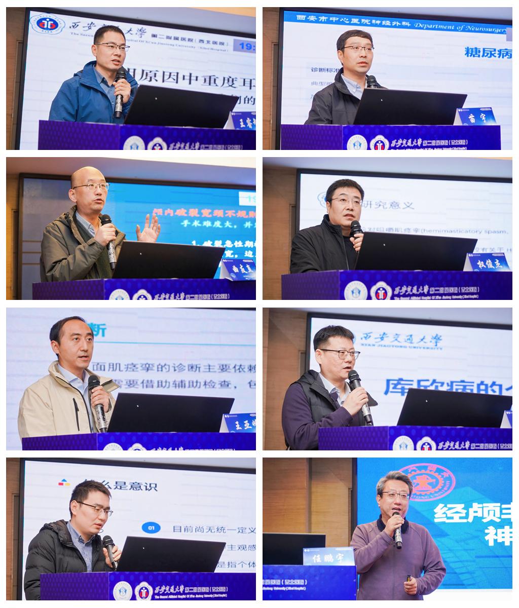 随后,来自西安交大一附院的张华教授、西安交大二附院的吕健教授、陕西省人民医院的缪星宇教授、空军军医大学的葛顺楠教授、陕西省中医药大学的侯文教授以及省内各地的十余位专家学者,分别围绕癫痫外科、脑出血、脑创伤、脑血管病、神经外科相关肺病、脑垂体瘤、耳鸣、咀嚼肌痉挛、面肌痉挛、高血压的神经调控等相关问题做了精彩的讲演。这些授课内容紧贴临床实际,展示了领域内的最新研究成果和技术进展,既有理论深度,又具实践指导意义,赢得了与会者的一致好评。