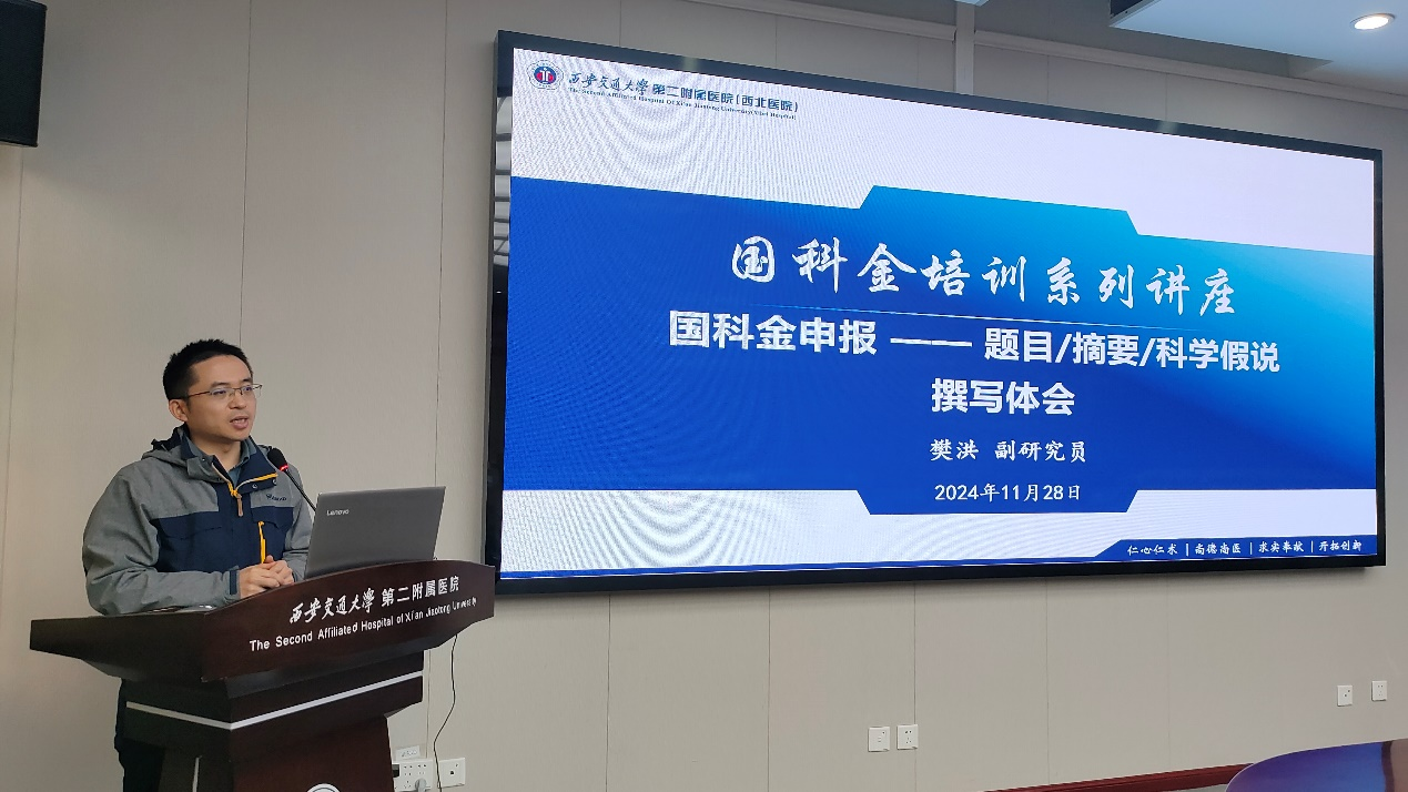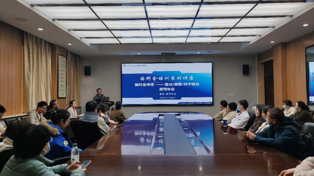 为提升我院新入职硕博士职工、博士后等科技人员国家自然科学基金标书撰写能力,科研部于11月28日下午特邀请神经内科副主任樊洪副研究员开展了主题为《国科金申报——题目/摘要/科学假说撰写体会》的专题讲座。本次讲座由科研部李文江老师主持。