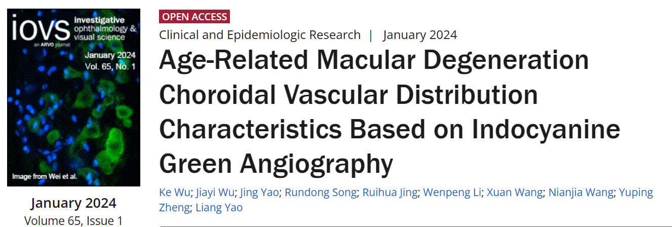 郑玉萍教授团队在老年性黄斑变性脉络膜血管分布特征认识取得重大进展,在眼科学研究权威期刊 Investigative Ophthalmology & Visual Science (IOVS)(IF 4.75,中科院分区2区,JCR分区Q1(6/95))上发表高水平论文。IOVS杂志创刊于1977年,是美国眼科学与视觉科学协会(ARVO)的官方期刊,也是眼科学基础研究的顶级期刊,在眼科学领域具有极高的认可度。