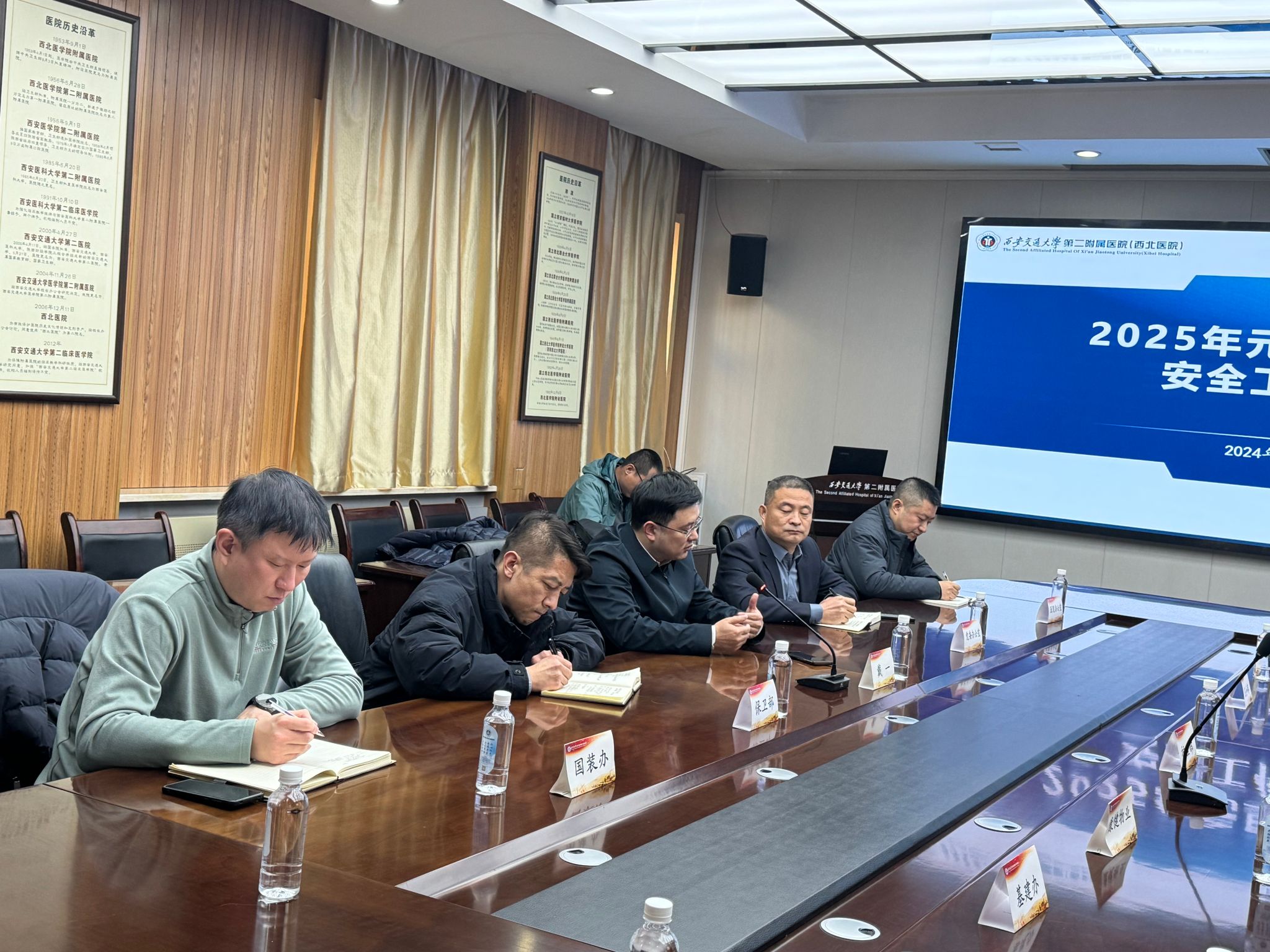 为深入贯彻习近平总书记关于安全生产重要论述指示批示精神,确保“元旦”“春节”期间医院各项工作平稳运行,扎实做好安全生产和医疗服务工作,保证广大群众和职工、学生过一个安全祥和的节日,医院于12月31日上午在宗濓会议室召开2025年元旦春节假期安全工作会议。会议由保卫部召集,党办、院办、后勤保障部、国装办、医务部、护理部、康健物业公司、基建办领导及主要业务负责人参会,戴一副院长出席并做出重要工作指示和部署。